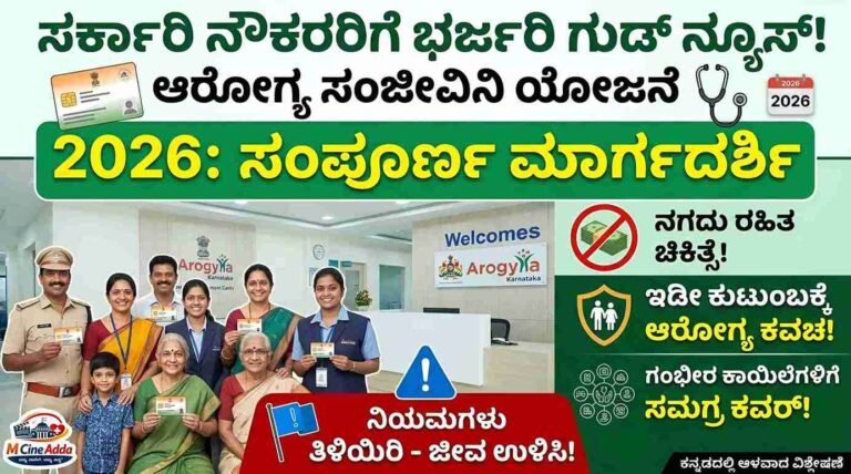 Arogya Sanjeevini Scheme : ಸರ್ಕಾರಿ ನೌಕರರಿಗೆ ಕರ್ನಾಟಕ ಸರ್ಕಾರದಿಂದ ಭರ್ಜರಿ ಗುಡ್ ನ್ಯೂಸ್! ಕರ್ನಾಟಕ ಆರೋಗ್ಯ ಸಂಜೀವಿನಿ ಯೋಜನೆ 2026: ನೌಕರರ ಕುಟುಂಬದ ಸುಭದ್ರ ಆರೋಗ್ಯಕ್ಕೆ …